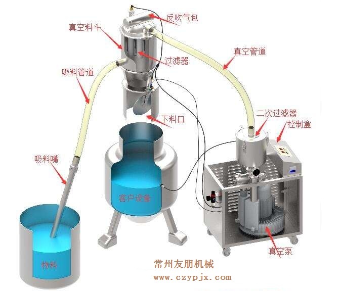 *多應用于二維、三維、雙錐、V型等各種密閉容器和設備的上料。