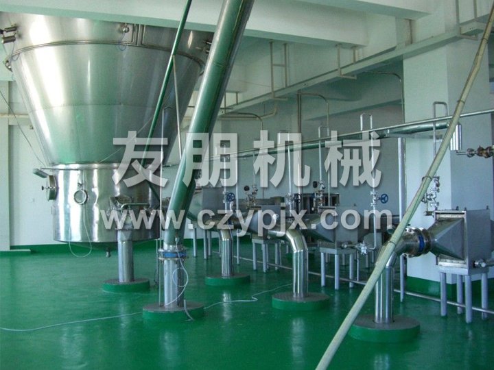 3、生產過程簡化,操作控制方便。對于含濕量40-60%(特殊物料可達90%)的液體能夠一次干燥成粉粒產品,干燥后產品不需粉碎和篩選,減少生產工序,提高產品純度。能在一定范圍內通過改變操作條件進行調整產品粒徑、松密度、終水份,控制較為方便。