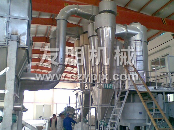 7、干燥室內周向氣速高,物料停留時間短,有效防止物料粘壁及熱敏性物料變質現(xiàn)象,達到高效、快速、小設備、大生產。